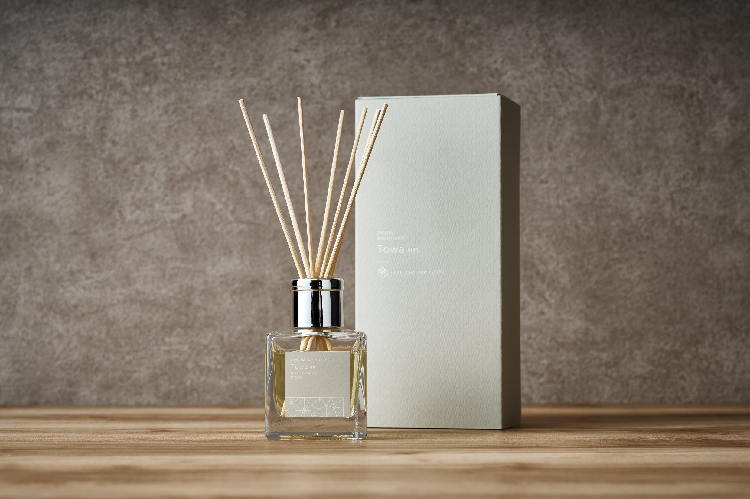 ホテルからグランヴィア京都のラウンジや客室から見える「京都の夕景」がコンセプトのオリジナルアロマは、ホテルのコンシェルジュが香りの選定から携わり、特別に調合されました。